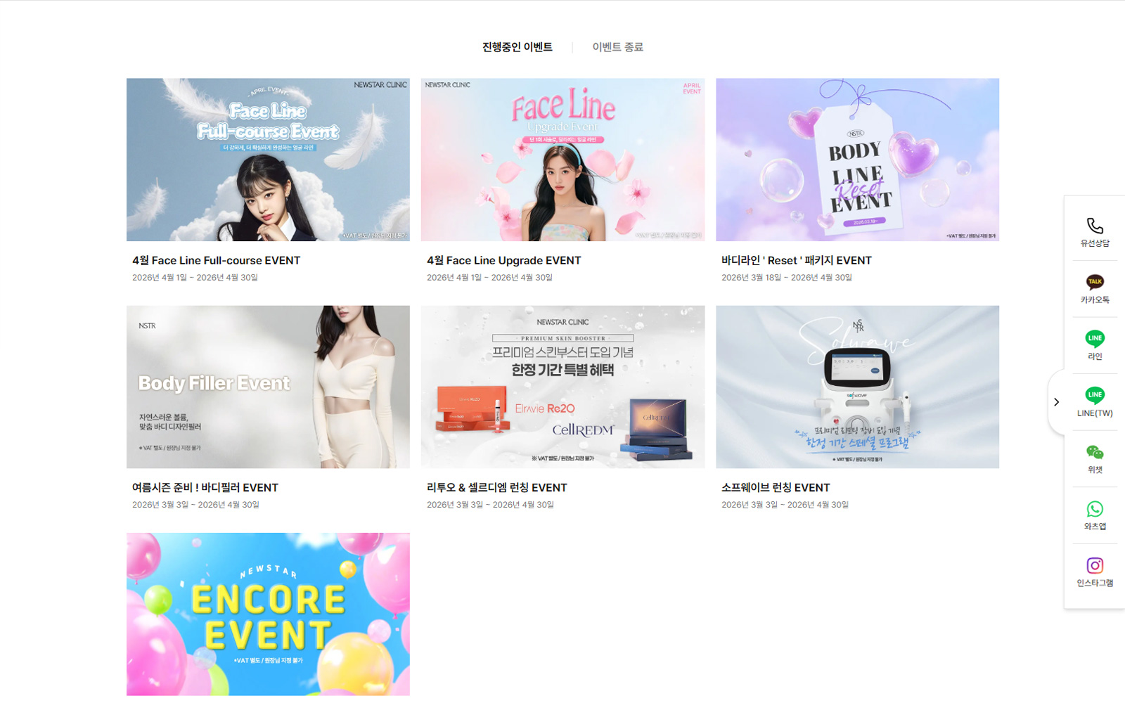 의료법 이슈를 고려한 회원제 비포애프터 구조, 이벤트 기간에 따른 팝업/배너 노출, 다국어 구성과 예약 흐름까지 병원 특유의 운영 요소를 함께 반영했습니다.