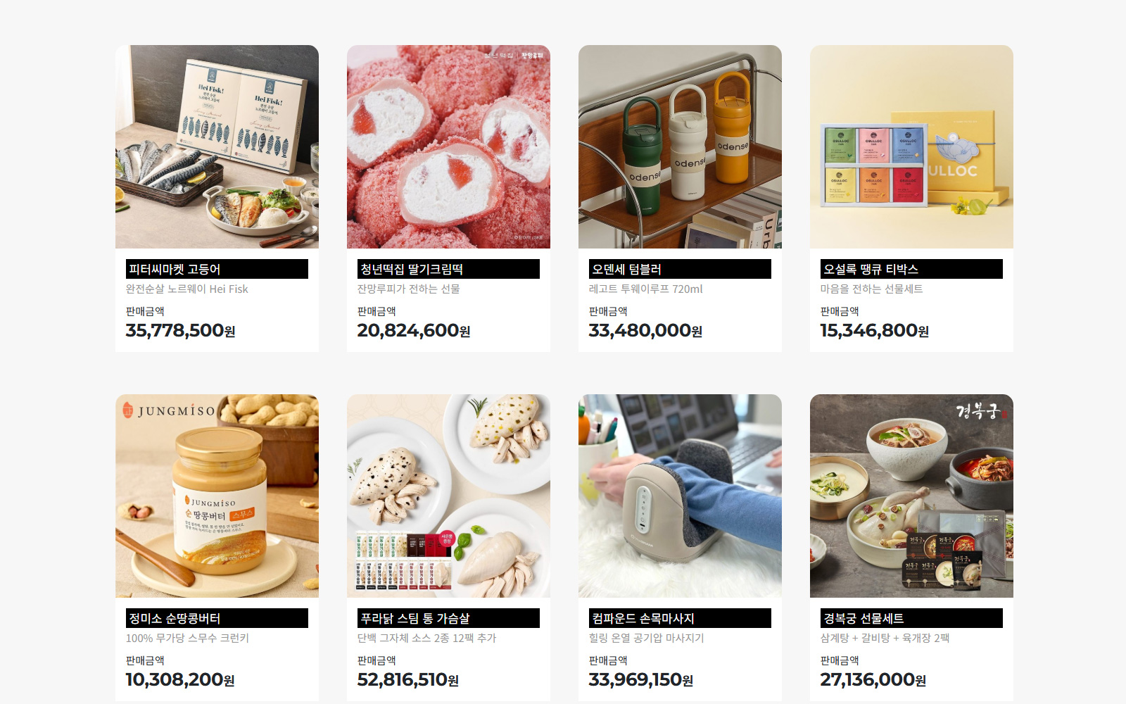 단순 소개 사이트가 아니라 셀러와 브랜드의 역할이 분리된 구조를 설계하고, 수익 랭킹 요소를 포함해 플랫폼 성격이 드러나도록 구성했습니다.