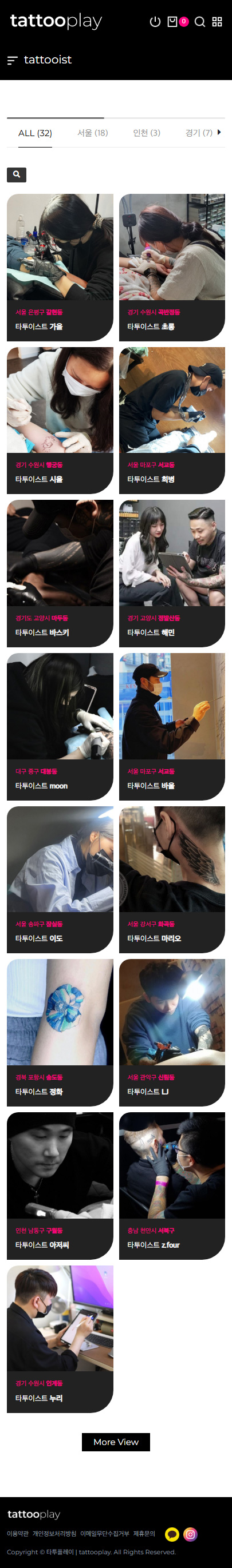 지역별 타투이스트와 포트폴리오를 검색하고, 유저가 원하는 스타일의 작업자를 찾을 수 있도록 만든 타투이스트 연결형 O2O 플랫폼입니다.
