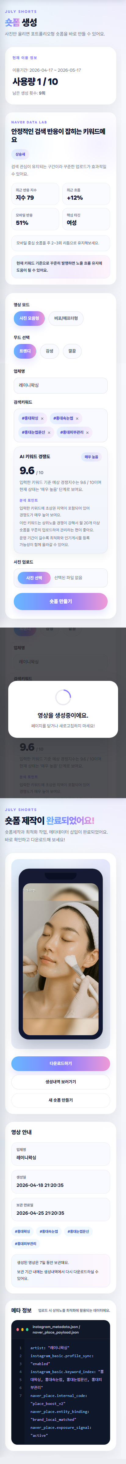 키워드 분석부터 숏폼 생성, 고객관리, 구독 결제까지 연결한