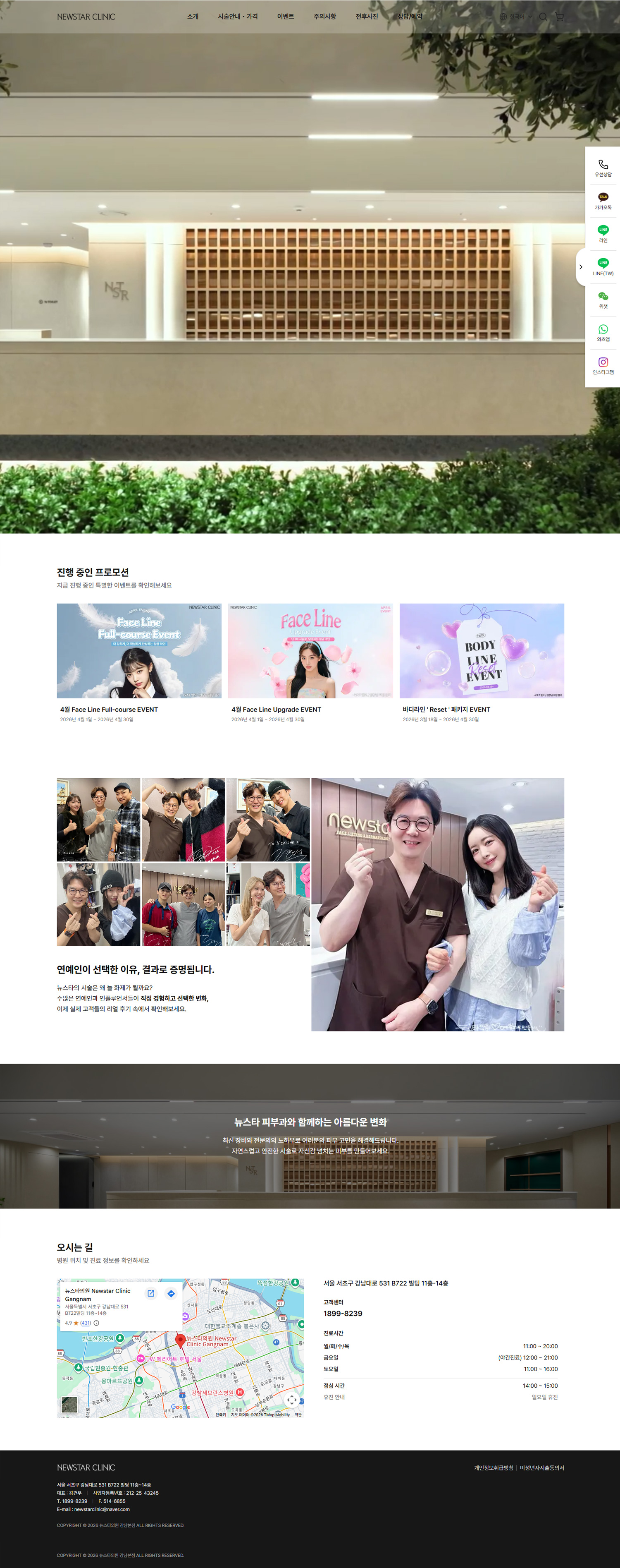 의료법 이슈를 고려한 회원제 비포애프터 구조, 이벤트 기간에 따른 팝업/배너 노출, 다국어 구성과 예약 흐름까지 병원 특유의 운영 요소를 함께 반영했습니다.