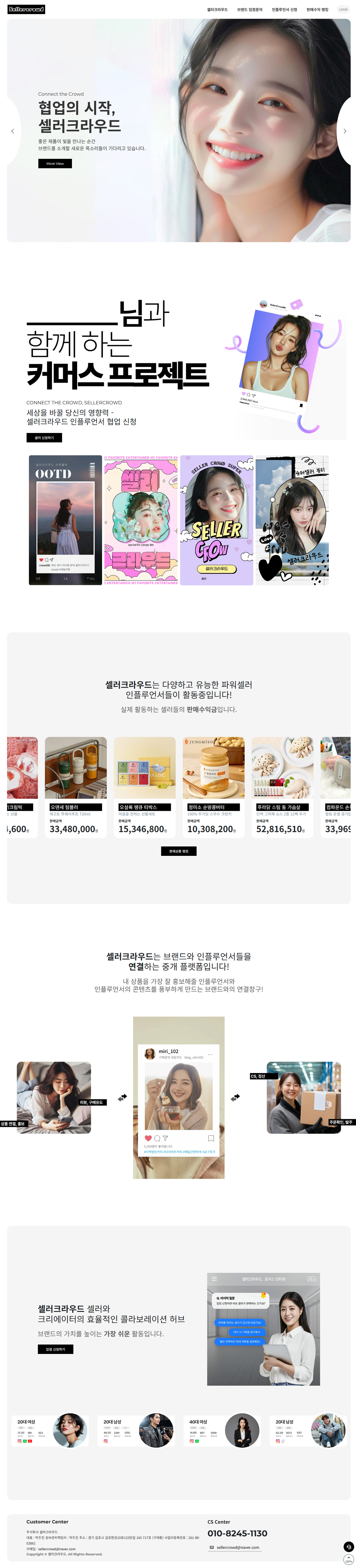 단순 소개 사이트가 아니라 셀러와 브랜드의 역할이 분리된 구조를 설계하고, 수익 랭킹 요소를 포함해 플랫폼 성격이 드러나도록 구성했습니다.